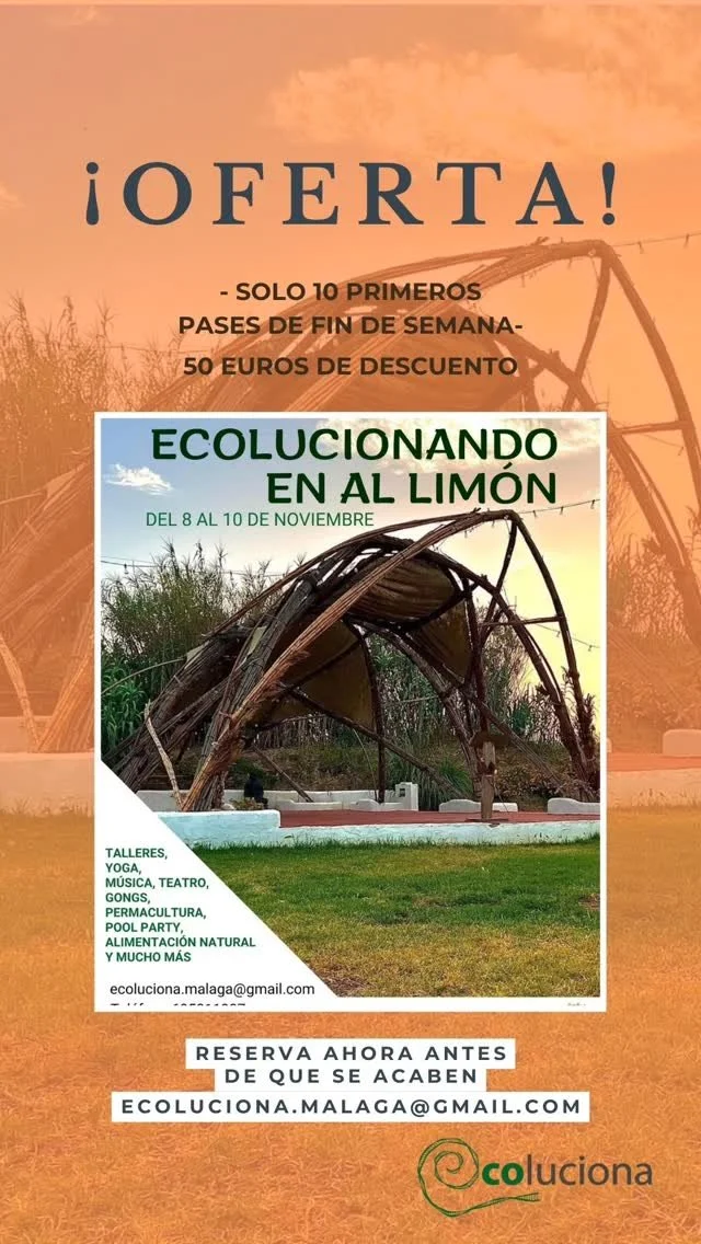 Llega el verano y con él, las ganas de descansar y aprovechar al máximo los días. Desde Ecoluciona, te ofrecemos la oportunidad de disfrutar de un fin de semana dedicado al cuidado de las personas y la naturaleza. Te invitamos a un evento repleto de actividades como yoga, gongs, tintes naturales, talleres de permacultura, teatro, música, comida saludable y mucho más. Todo esto en el entorno especial de Finca Al Limón, un ecolodge pionero en el sur de Europa, donde ya hemos celebrado eventos inolvidables como la Ecoweek.